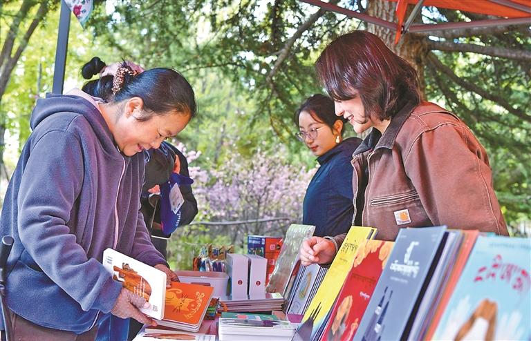 本报记者 晓勇 本报见习记者 权文娟 摄 这是书店首次亮相春日书会,短短一个半小时,200本主题图书便售出20本。“现场的热情、浓厚的文化氛围,还有大家对多元文化的喜爱,都超出预期。”雍措笑着说。