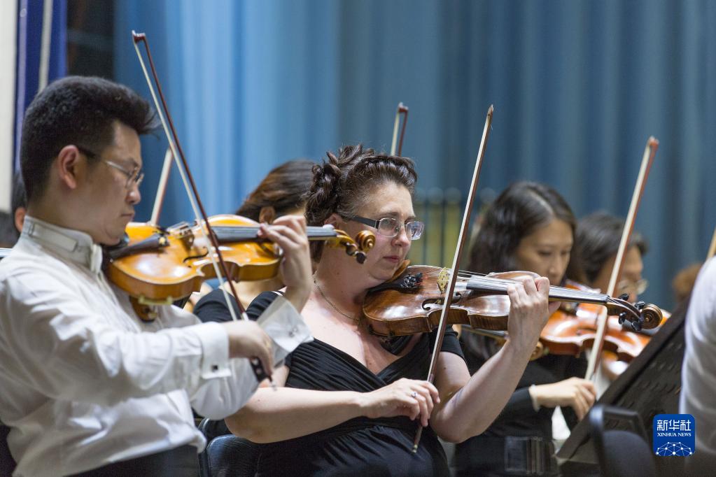2016年7月6日,在俄罗斯伊尔库茨克,中俄音乐家在“中俄媒体交流年”专场音乐会上同台演奏。