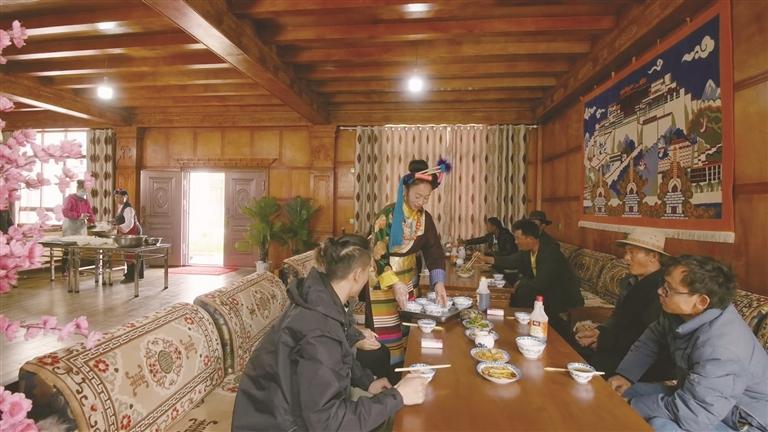 作为自治区级非遗传承人、芒康县“妇女致富带头人”的卓玛拉姆,于2010年开办盐井果拉丛农家乐,凭借着正宗的加加面风味和热情的服务,逐渐积累了口碑。2012年,在各级政府的支持下,她采用“民族特色餐饮+乡村旅游接待”的经营模式,生意日益红火。2017年,通过贷款300万元、自筹160万元翻建了农家乐,将其升级为综合型的民族特色餐饮店,经营规模大幅扩大,最多时日接待游客达300余人。