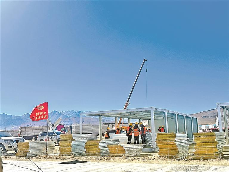 图为2025年1月10日,定日县受灾最严重的长所乡多个安置点正在组织力量快速搭建活动板房。本报记者 次旦央吉 摄