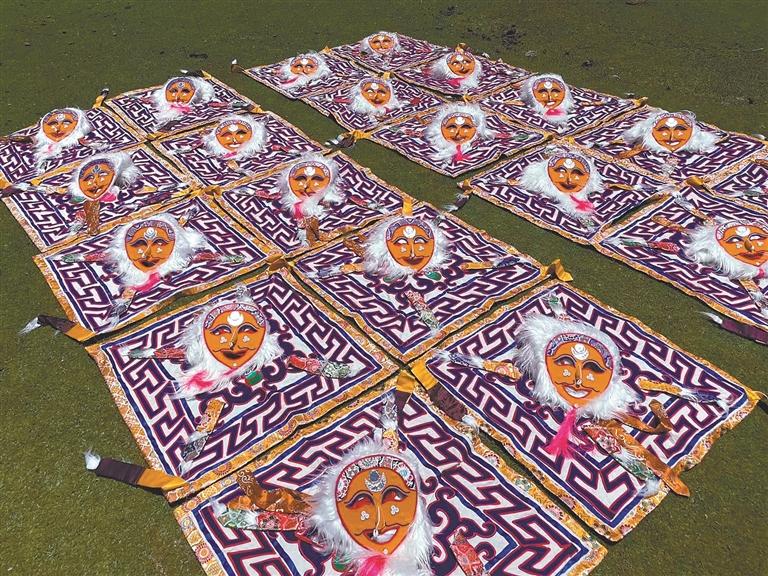 作为藏戏艺术的重要载体,色彩缤纷的藏戏服饰、神秘独特的面具常让人眼前一亮,但其制作技艺用料考究、形制庄重,极其考验匠人的功底。拉萨市达孜区雪乡扎西岗村的阿古家族,是当地有名的藏戏服饰制作世家,凭借精湛手艺传承五代,有着数百年的历史。