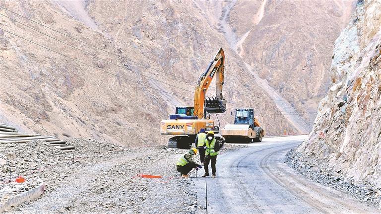 图为建设中的省道521线澜沧江沿江公路如美至曲孜卡段新改建工程控制性工程。本报记者 温凯 平措朗加 摄