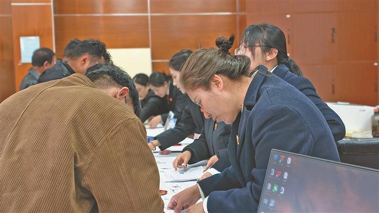 图为林周县人民法院执法人员在办理兑现民事案款相关事宜。本报记者 央金 摄
