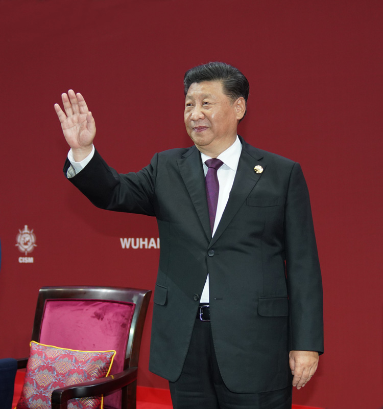 10月18日,中共中央总书记、国家主席、中央军委主席习近平在武汉出席第七届世界军人运动会开幕式并宣布运动会开幕。