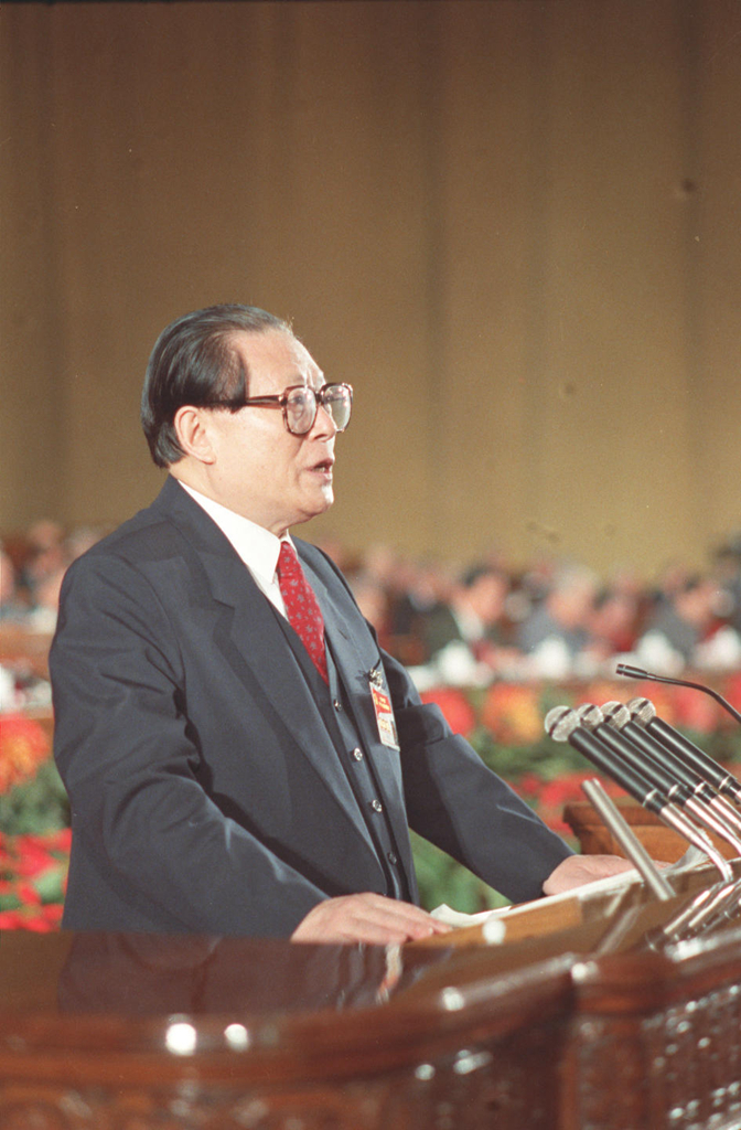 1997年9月12日,中国共产党第十五次全国代表大会在北京人民大会堂开幕。这是江泽民同志代表第十四届中央委员会作报告。