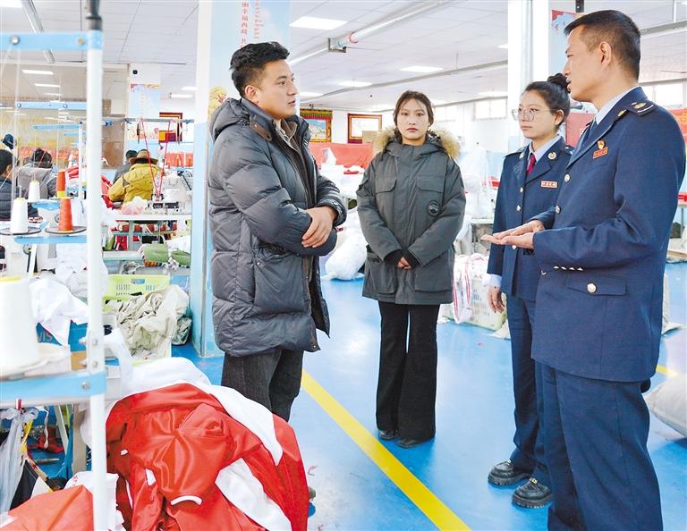 丁青县税务局工作人员为丁青县穹鹏民族手工艺品发展有限公司宣讲税费优惠政策