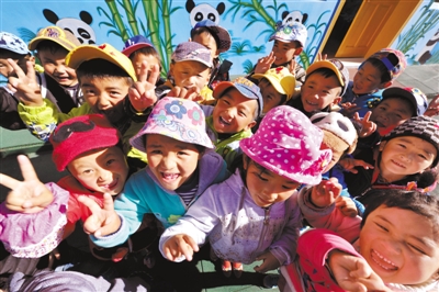 林芝市朗县洞嘎镇小学附属幼儿园的孩子们在快乐地玩耍着。