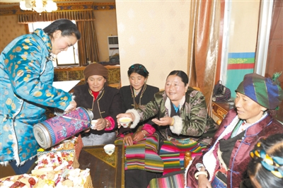 山南市浪卡子县浪卡子镇群众聚在一起享受现在美好的新生活,展望未来生活。