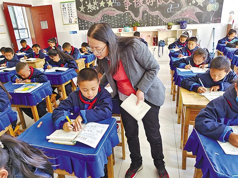广东省第三批“组团式”教育援藏队员韩咏梅在察隅县小学授课。