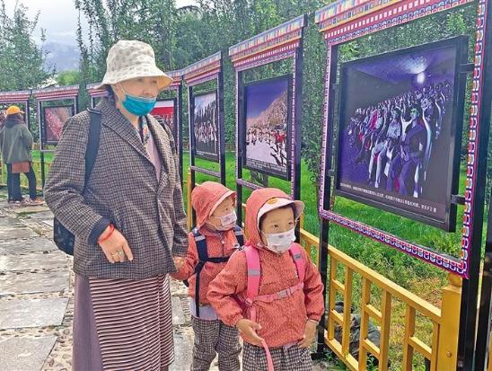 图为群众在宗角禄康公园内参观“西藏·70——庆祝西藏和平解放70周年影像展”。