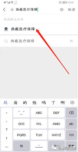 1.1微信搜索“西藏医疗保障”微信公众号