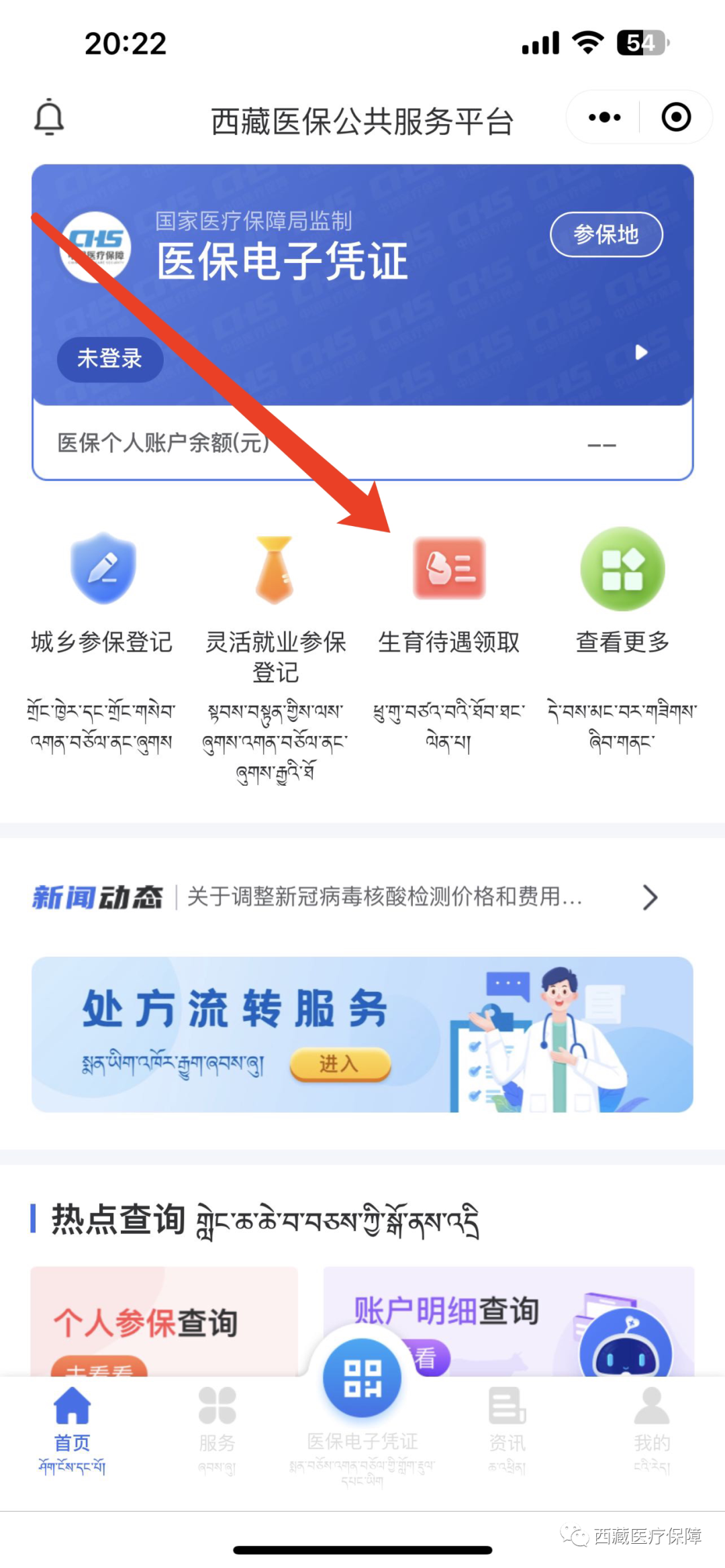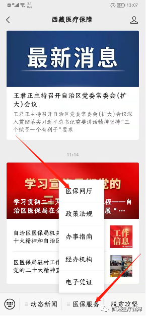 1.2点击下方“医保服务-医保网厅”进入西藏医保微信小程序
