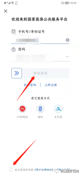 2.3输入账号密码后,最下方选择“我已阅读并同意《用户注册协议》和《隐私政策》,然后滑动登录