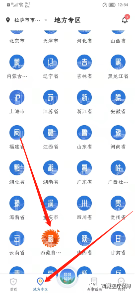 2.4点击下方“地方专区”,再点击页面中的“西藏自治区”进入专区页面