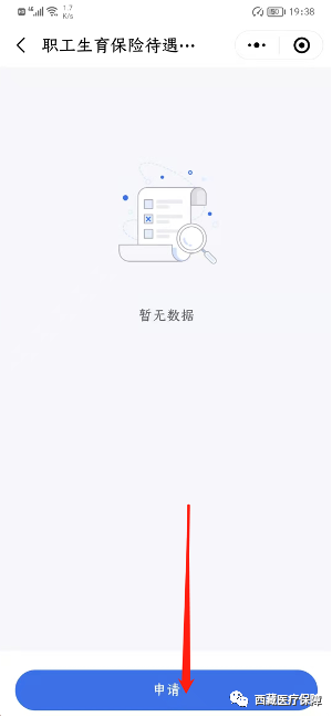 2.6首次进入,点击下方“申请”按钮进行生育保险待遇申领