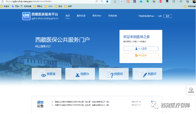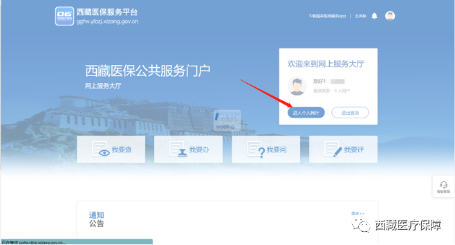 西藏医保公共服务平台——个人网厅