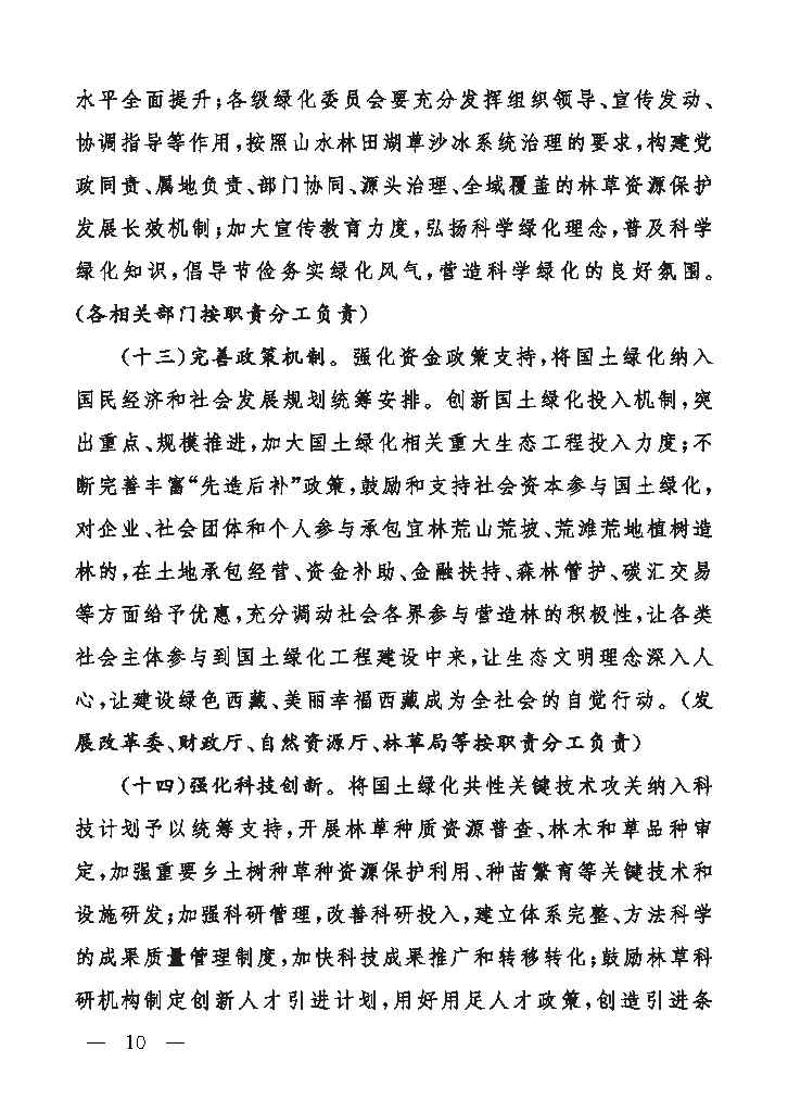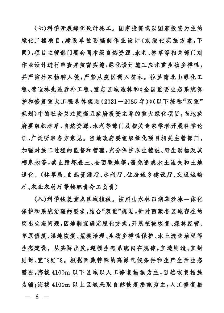 西藏自治区人民政府办公厅关于科学绿化的实施意见