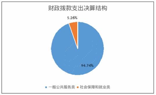 2019年度财政拨款支出1163.57万元,主要用于以下方面:一般公共服务(类)支出1102.38万元,占94.74%;社会保障和就业(类)支出61.19万元,占5.26%。