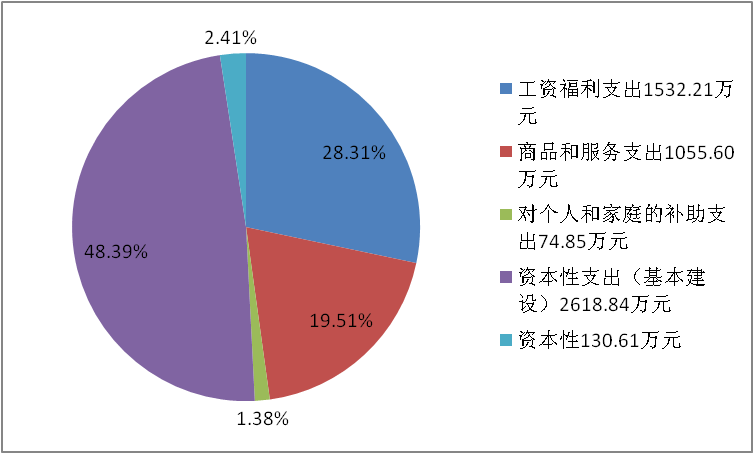 2020年度财政拨款支出5412.10万元,主要用于以下方面:工资福利支出1532.21万元,占28.31%;商品和服务支出1055.60万元,占19.51%,对个人和家庭的补助支出74.85万元,占1.38%,资本性支出(基本建设)2618.84万元,占48.39%,资本性支出130.61万元,占2.41%。
