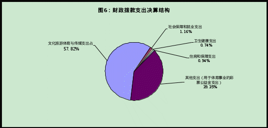 6.文化旅游体育与传媒支出(类)体育(款)其他体育支出(项)预算数502.82万元,支出190.05万元,执行了预算数的37.8%,结转312.77万元,存在结转资金的主要原因是根据疫情防控工作要求,部分体育赛事活动暂缓或取消举办,该项目经费结转下年实施。