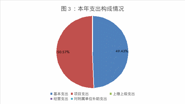 本 年支出410,836.45万元,其中:基本支出203,072.55万元,占49.43%;项目支出207,763.90万元,占50.57%;上缴上级支出0.00万元,占0%;经营支出0.00万元,占0%;对附属单位补助支出0.00万元,占0%。